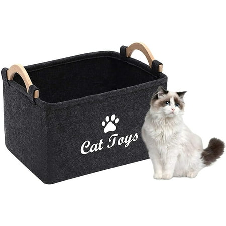 Cat Toy Storage Basket Storage Box With Wooden Handle Storage Box For Cat Toys Clothes And Pet Accessories Dark Gray Walmart Canada